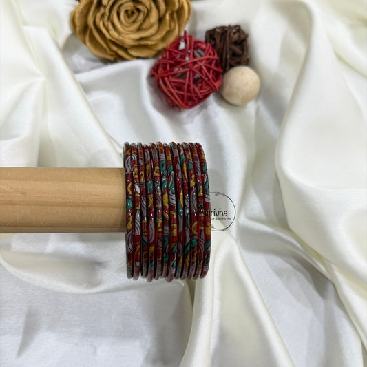 Vibha traditional luxury floral–vine Printed Glass Bangles (12Pc)