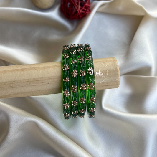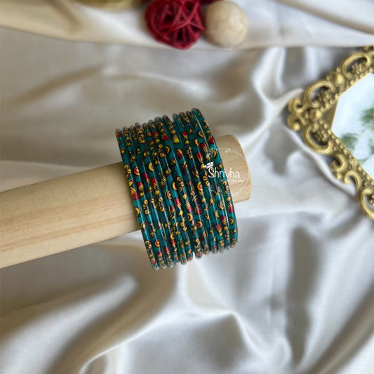 Floral Glass Bangles – Traditional Ethnic Glitter Style (2 Pc)