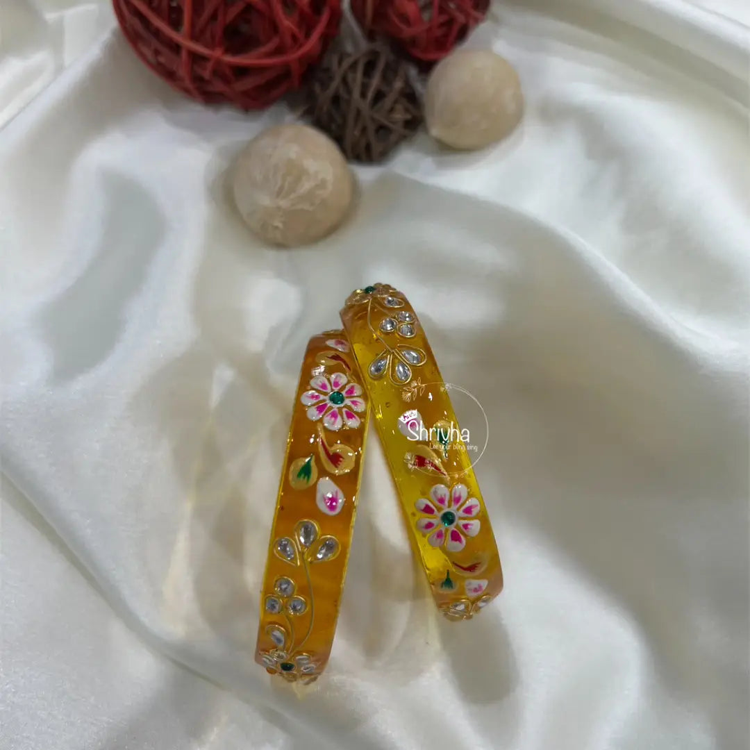 Floral Glass Bangles – Traditional Ethnic Glitter Style (2 Pc)